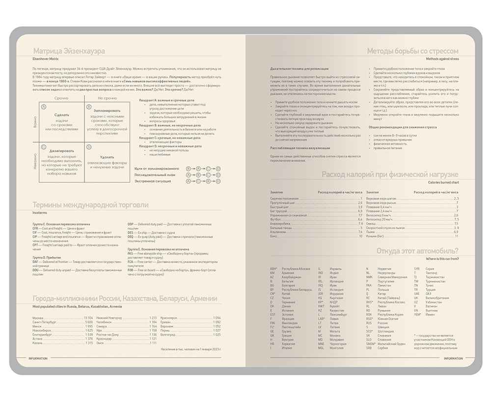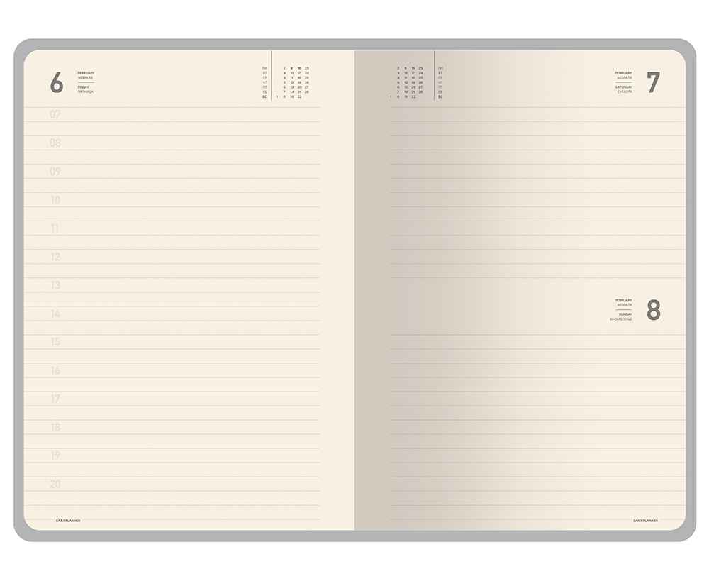 Элегантный датированный ежедневник Megapolis Color от Bruno Visconti идеально подходит для организации рабочего дня и ведения важных записей. Обложка из искусственной кожи с приятным на ощупь покрытием Soft Touch и обрез в тон создают гармоничный образ. Внутри – блок из бежевой бумаги плотностью 70 г/кв.м с разделами для планирования, календарем на 2026-2027 год и полезной справочной информацией. Для удобства навигации предусмотрена закладка-ляссе шириной 7 мм в цвет обложки.