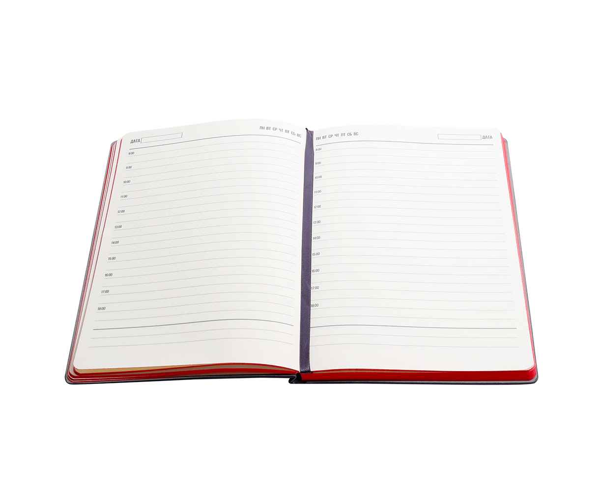 Мягкий переплёт из искусственной кожи с ярким, контрастным форзацем и нахзацем привлекает взгляд и поднимает настроение. Бумага в блоке выполнена в нежных оттенках слоновой кости, создавая ощущение роскоши и уюта.