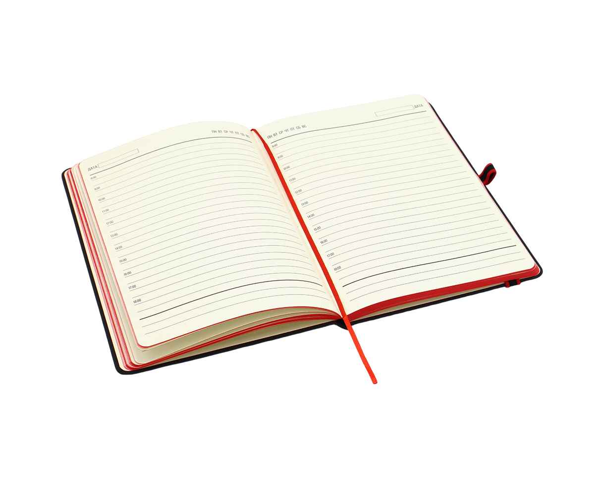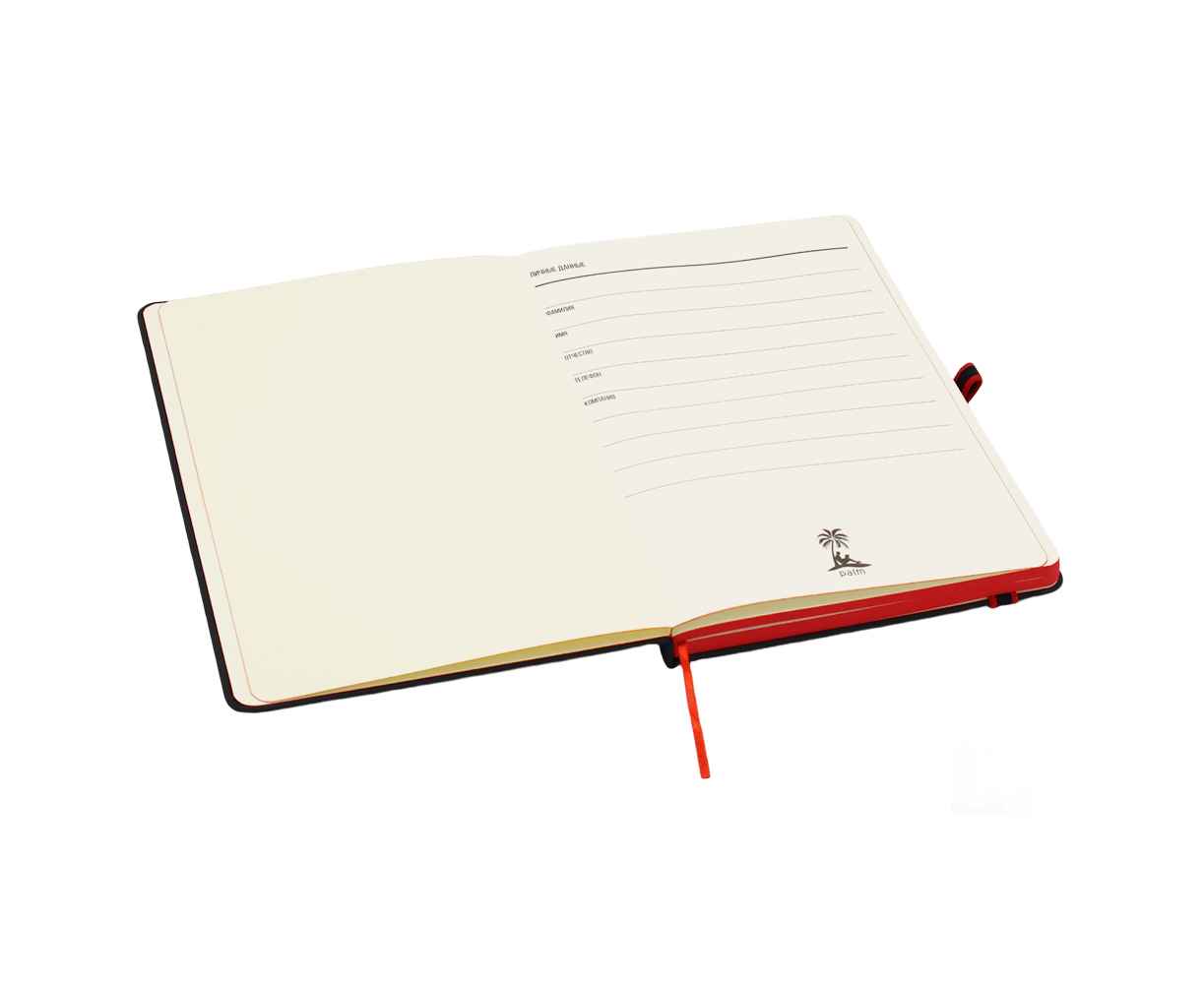 Ежедневник Sir Lewis — выполнен в твердой обложке. Имеет удобную, широкую резинку (1 см.) и держатель для ручки с ярким акцентом. Закладка и край — также в акцентном цвете. В начале ежедневника страничка с личными данными.