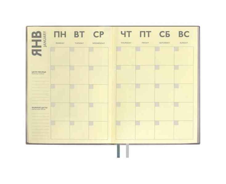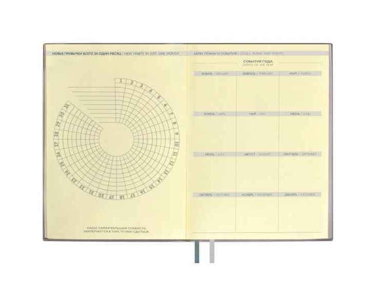 Ежедневник с гибкой обложкой и закладкой из искусственной кожи, дополнен капталом и двойным ляссе.