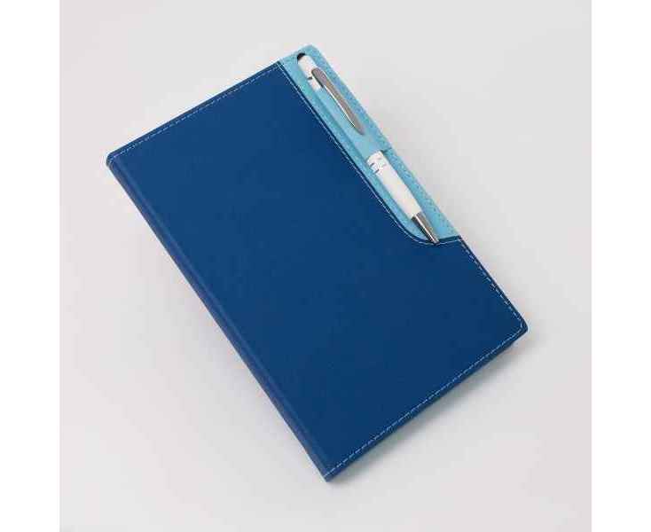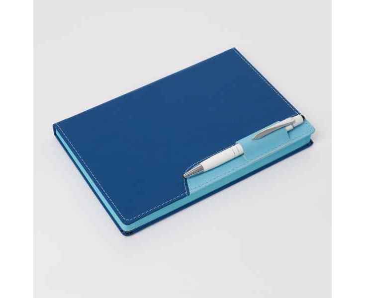 Стильный синий, белый, синий, белый цвет, продуманный дизайн и качественные материалы в сочетании с фирменным логотипом делают изделие по-настоящему уникальным. А благодаря удобному формату А5 ежедневник удобно брать с собой, так как он не займёт много места.