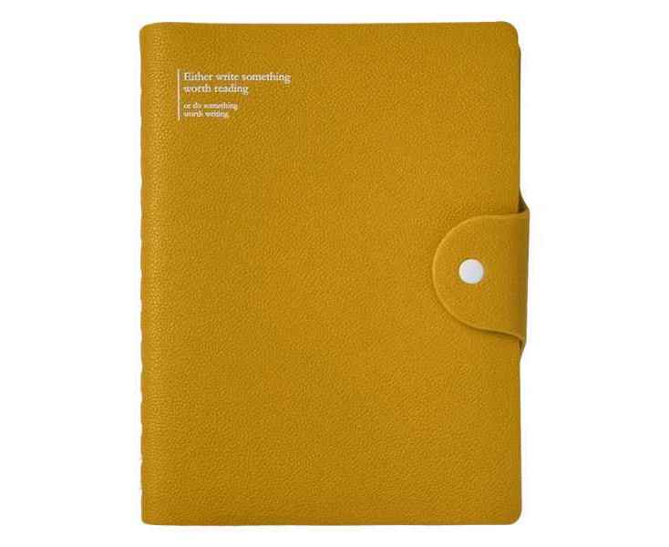 Мягкая обложка из приятной искусственной кожи с печатью имеет фигурный клапан на кнопке, который не позволит растрепаться страницам. Удобное крепление на полускрытой спирали позволит удалять ненужные листы, не повредив при этом сам блок.