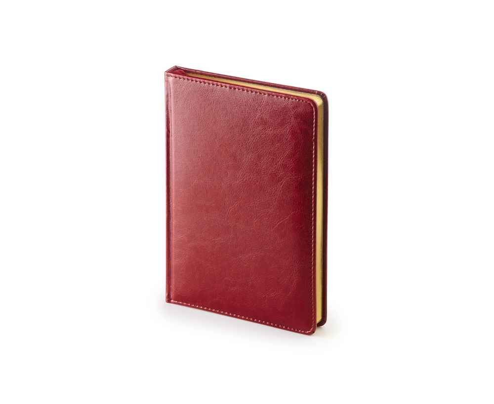 Благородство и статусность придают ежедневнику отстрочка по периметру в тон, скругленные углы, закладка-ляссе бордового цвета, золотой срез.