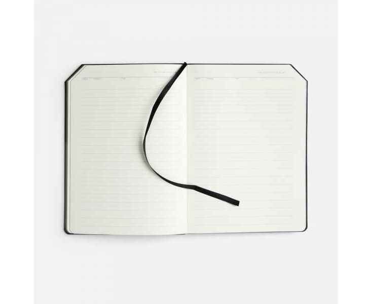 Ежедневник с гибкой обложкой, выполнен из материала Espresso, дополнен ляссе черного цвета и хлястиком на кнопке.