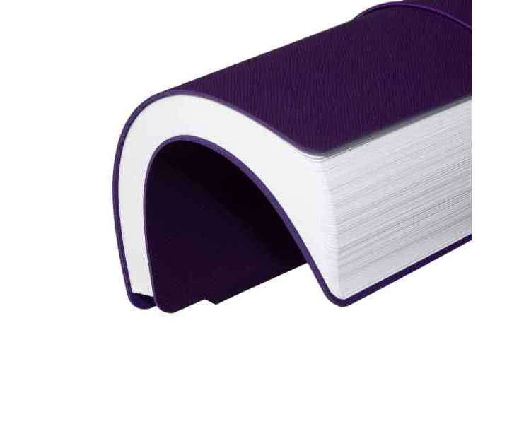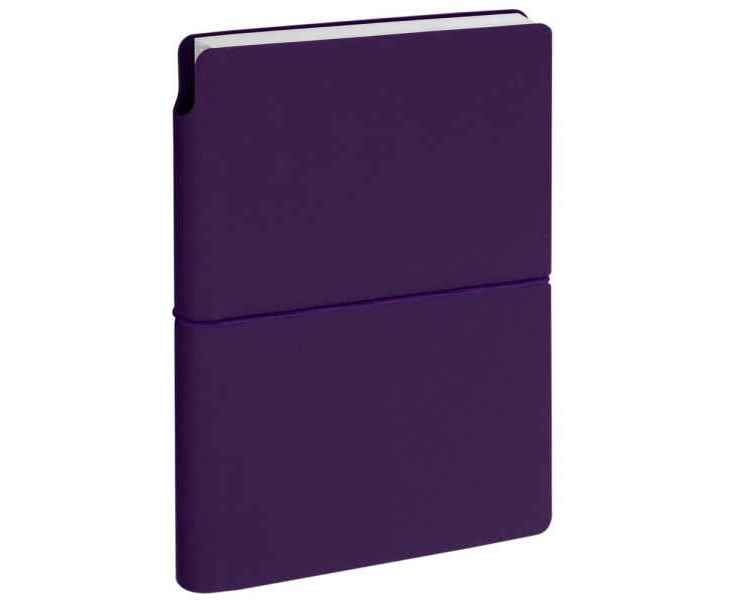 Ежедневник с гибкой обложкой выполнена из материала Nice Touch, фиолетовый и Latte, фиолетовыйl (внутренняя часть обложки), дополнен горизонтальной резинкой в цвет обложки. Внутри корешка — специальное место для крепления ручки размером до 15х1 см.