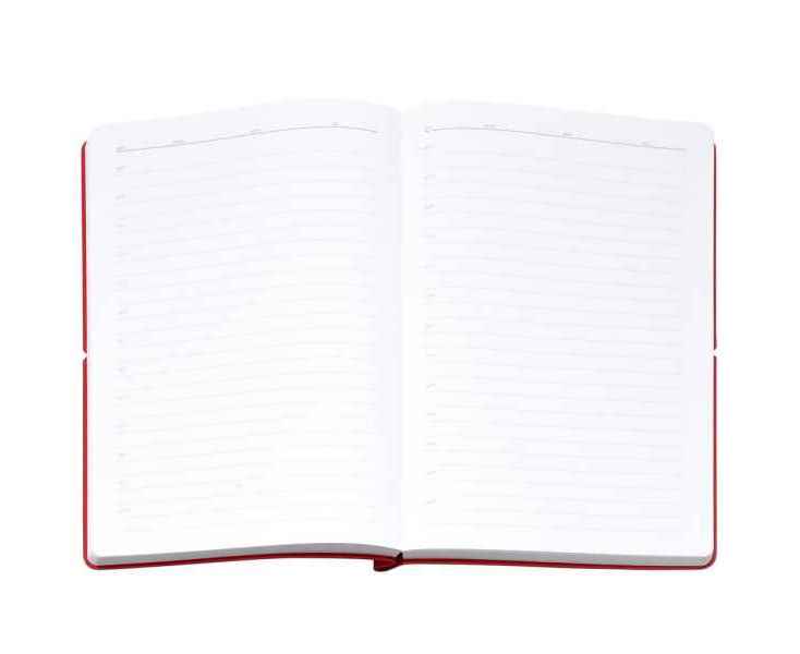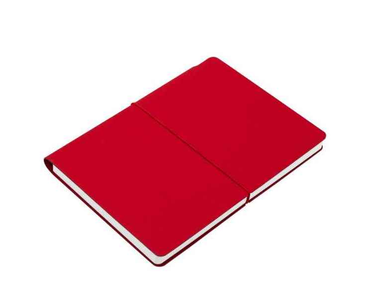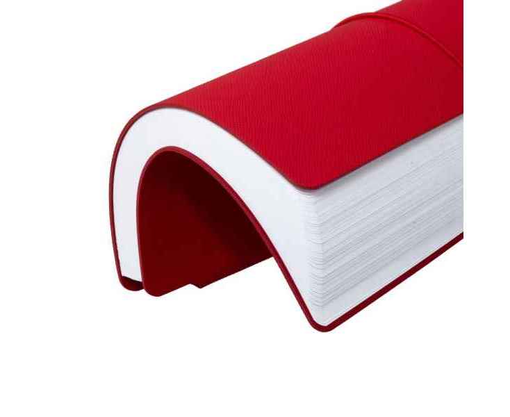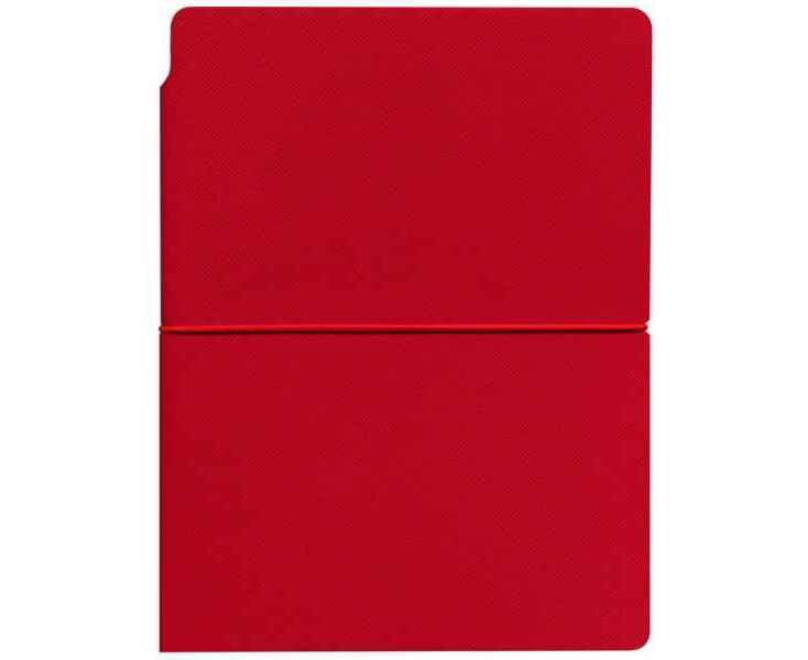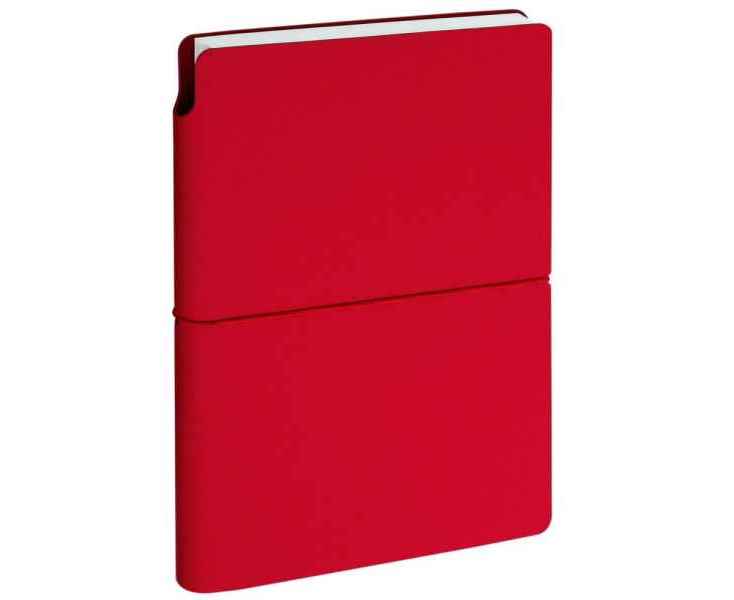 Ежедневник с гибкой обложкой выполнена из материала Nice Touch, красный и Latte, красный (внутренняя часть обложки), дополнен горизонтальной резинкой в цвет обложки. Внутри корешка — специальное место для крепления ручки размером до 15х1 см.