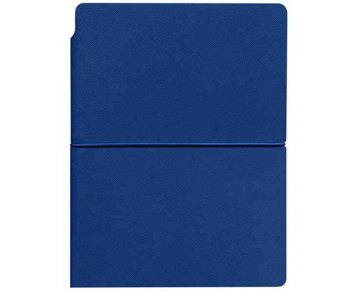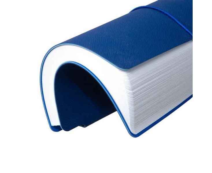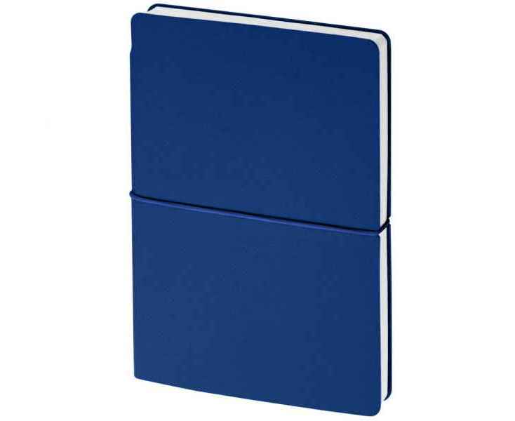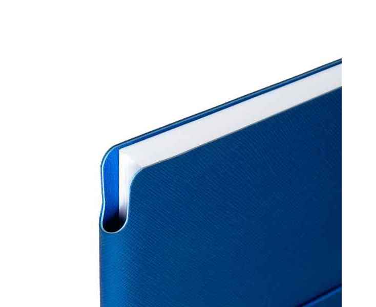 Ежедневник с гибкой обложкой выполнена из материала Nice Touch, синий и Latte, синий (внутренняя часть обложки), дополнен горизонтальной резинкой в цвет обложки. Внутри корешка — специальное место для крепления ручки размером до 15х1 см.