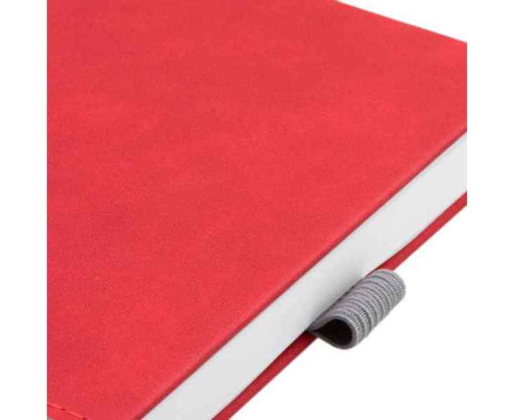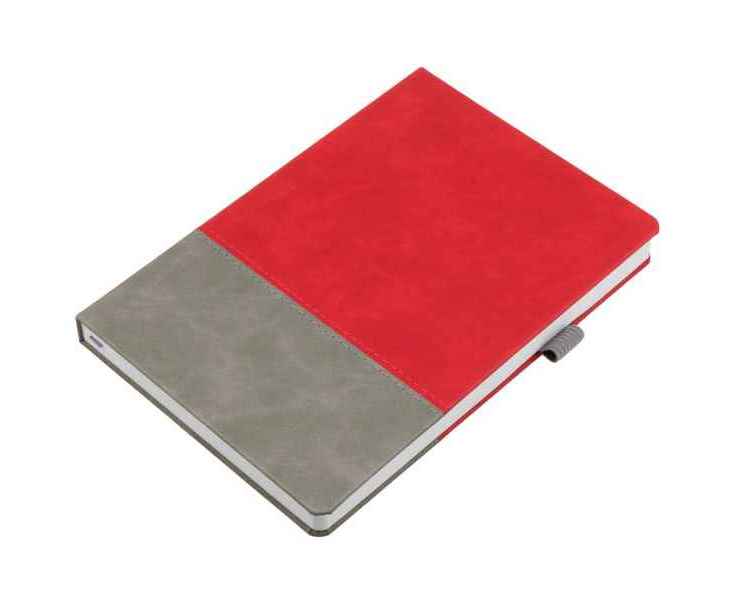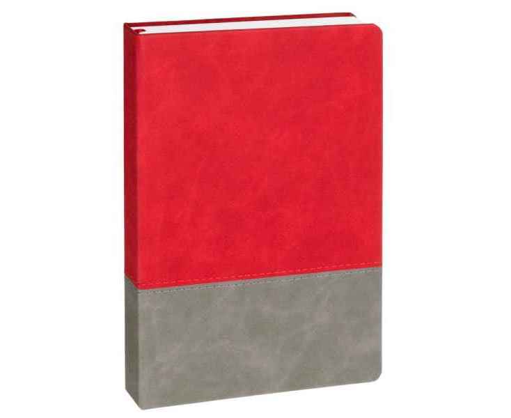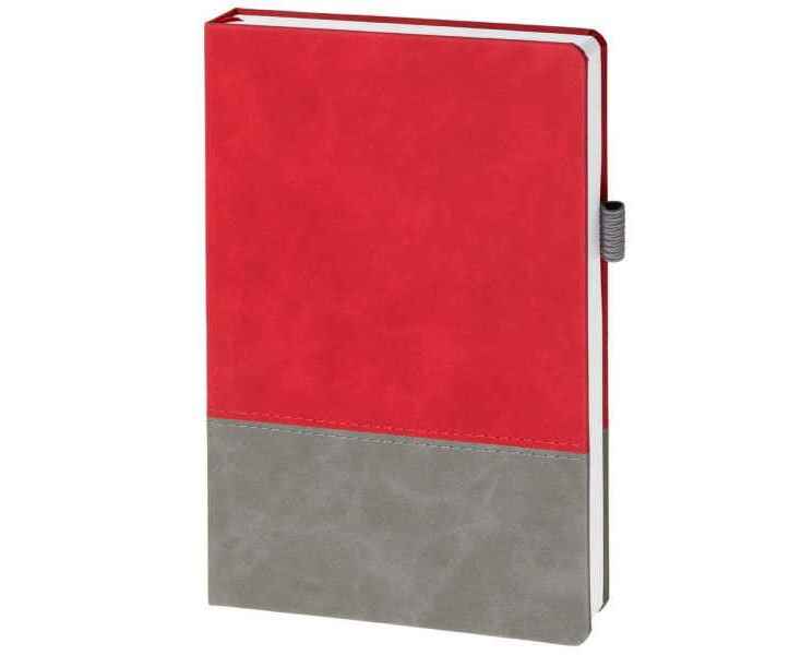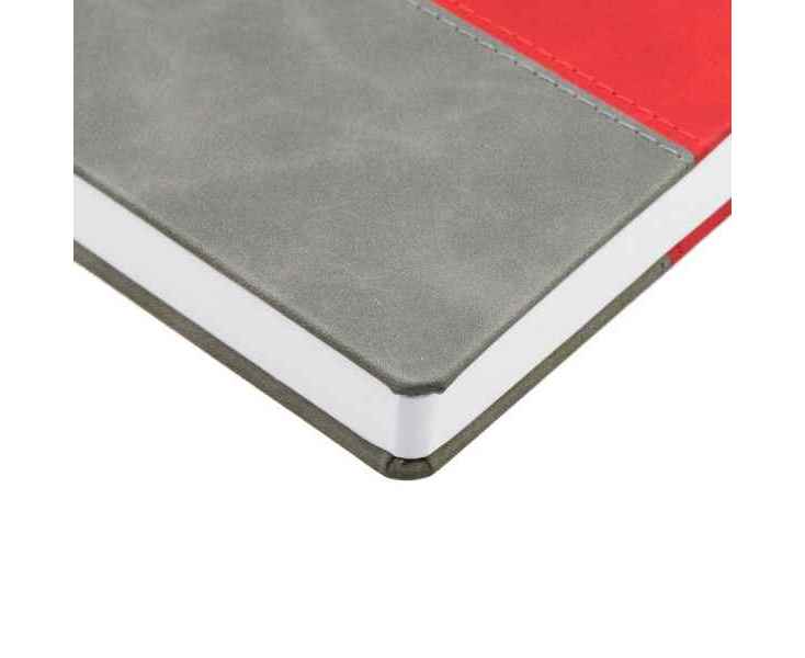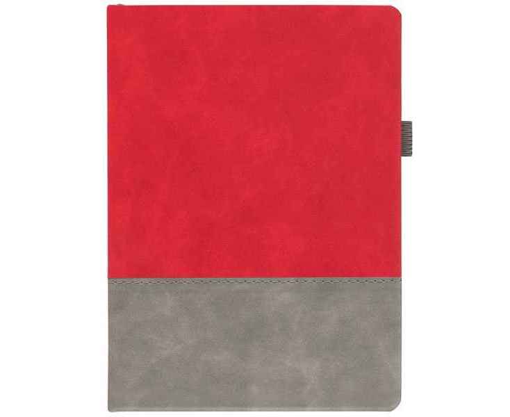 Ежедневник с твердой обложкой, без поролона, со сшивкой материалов Nubuck Touch, серый СС, и Nubuck Touch красный РР, дополнен двойным ляссе и петлей-резинкой для ручки.