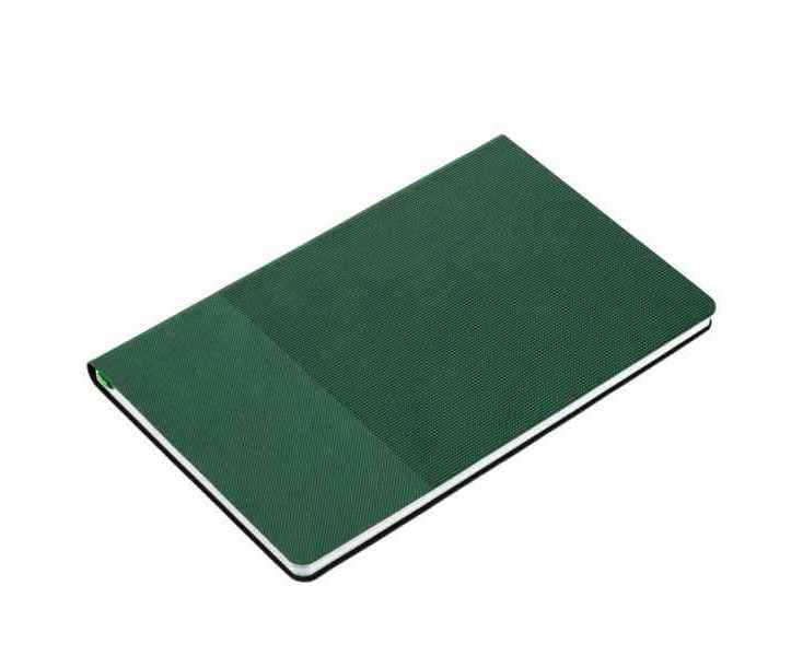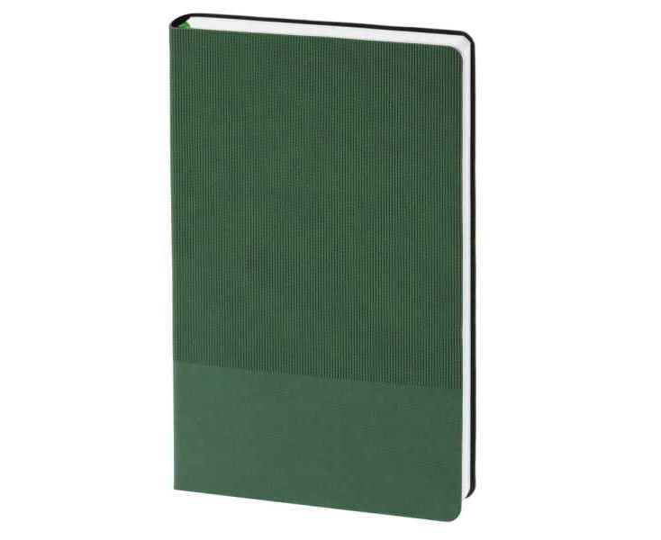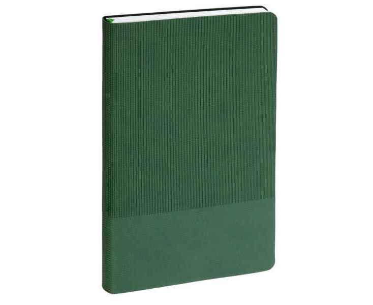 Ежедневник с гибкой обложкой, выполнен из материала Canyon, зеленый FF, дополнен ляссе в цвет обложки. Блинтовое тиснение на обложке создает эффект вязаного полотна.