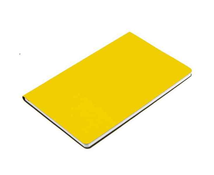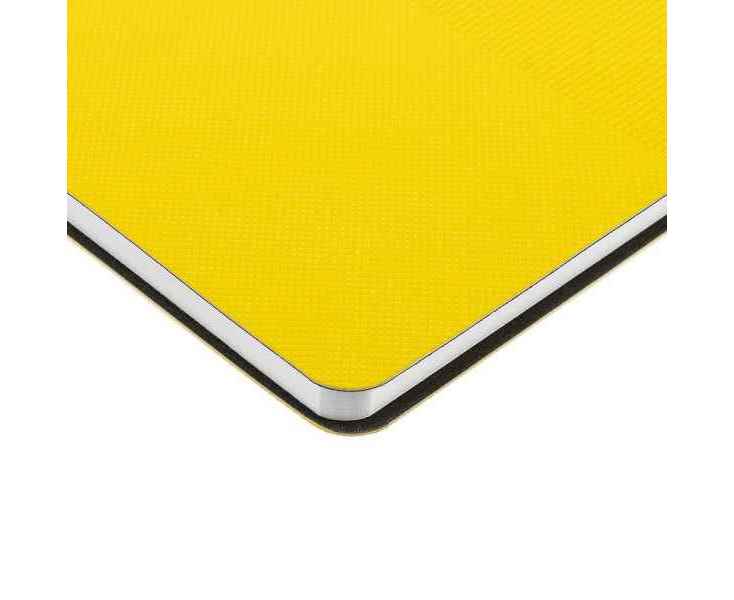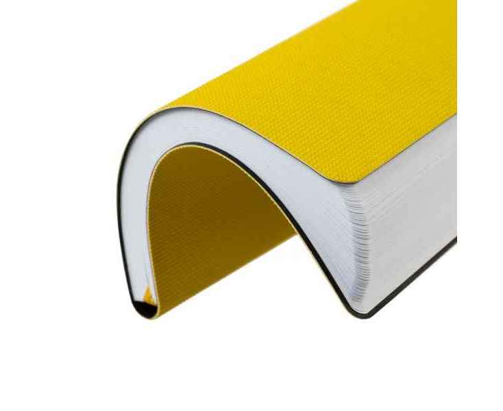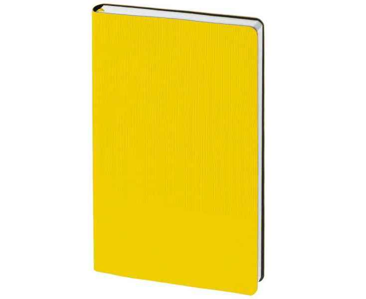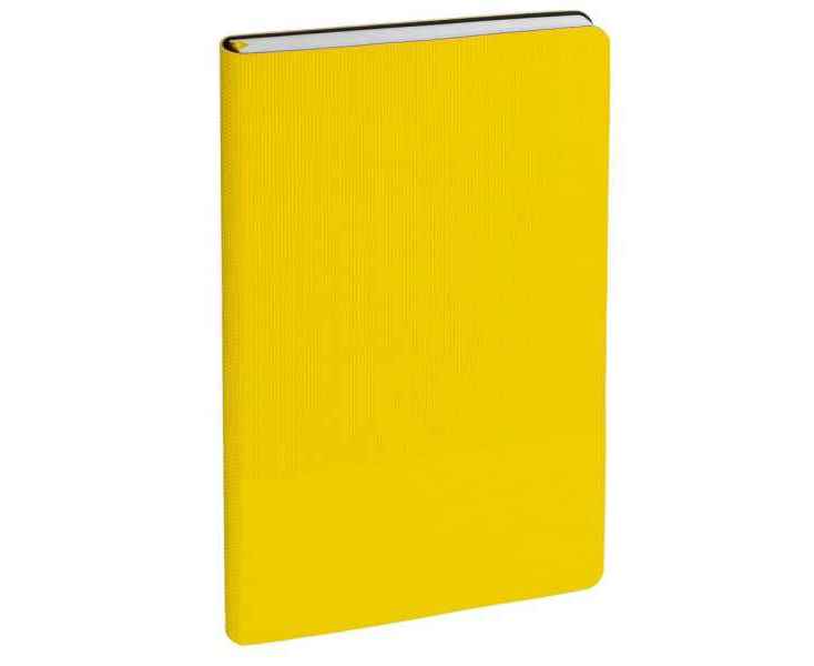 Ежедневник с гибкой обложкой, выполнен из материала Canyon, желтый КК, дополнен ляссе в цвет обложки. Блинтовое тиснение на обложке создает эффект вязаного полотна.