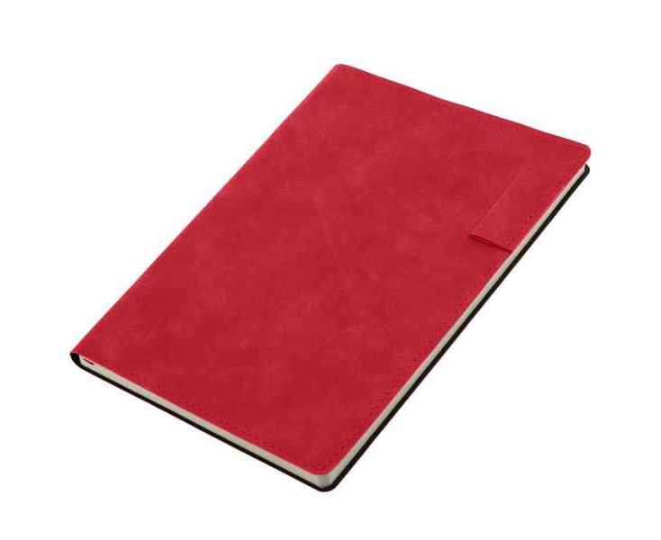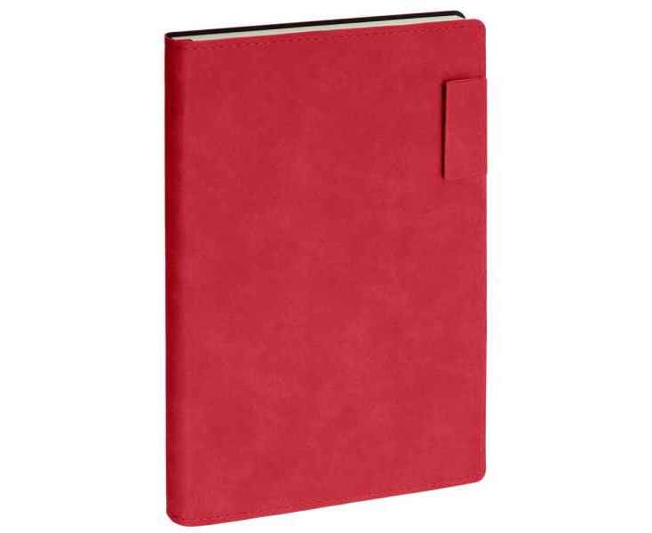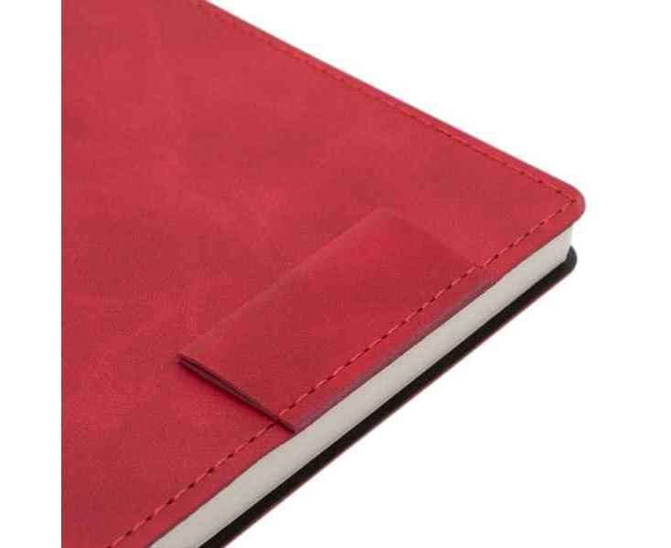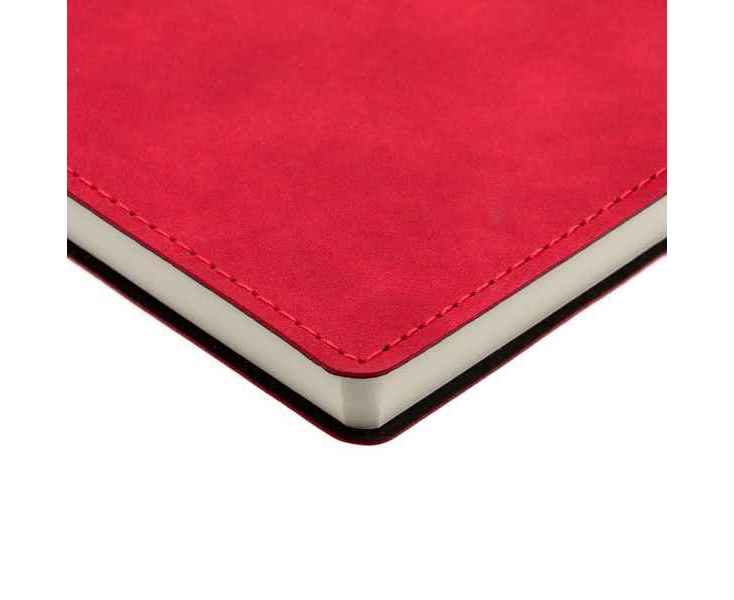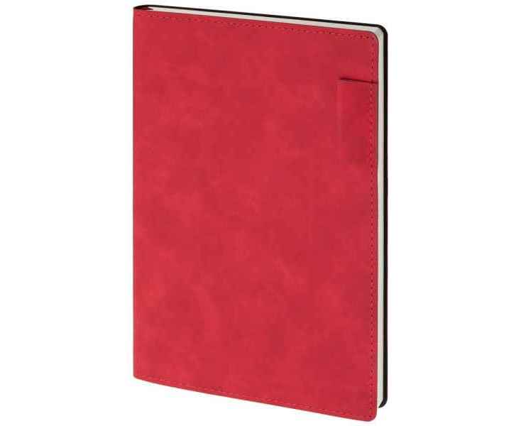 Ежедневник 17х24 см, с гибкой обложкой, выполнен из материала Nubuck Touch, красный РР, дополнен петлей-лейблом для ручки и двойным ляссе в цвет материала.