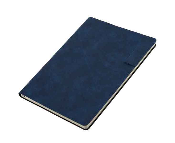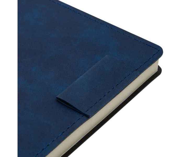 Ежедневник 17х24 см, с гибкой обложкой, выполнен из материала Nubuck Touch, темно-синий ХХ, дополнен петлей-лейблом для ручки и двойным ляссе в цвет материала.