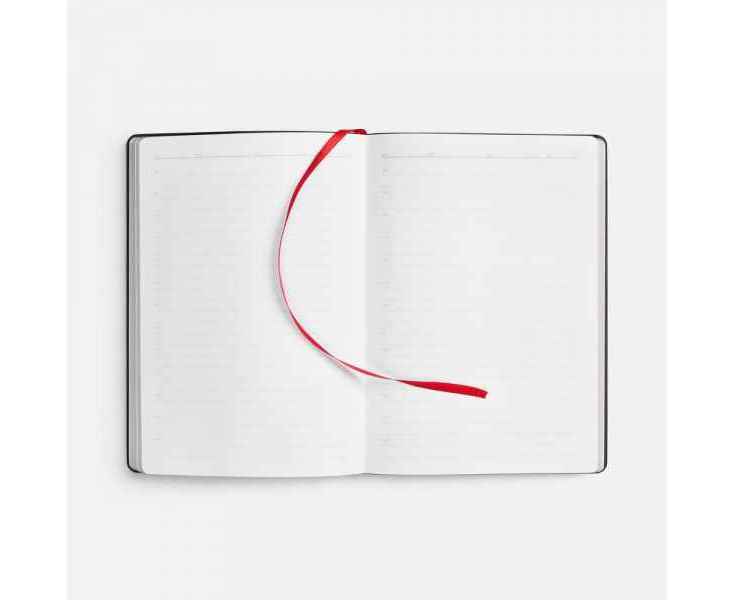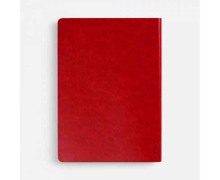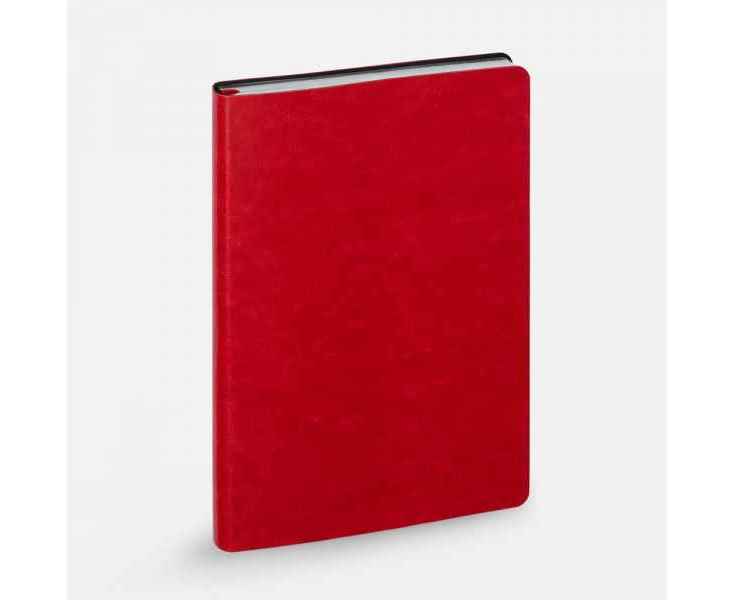 Ежедневник с гибкой обложкой, выполнен из материала Nebraska, красный PP, дополнен ляссе красного цвета.