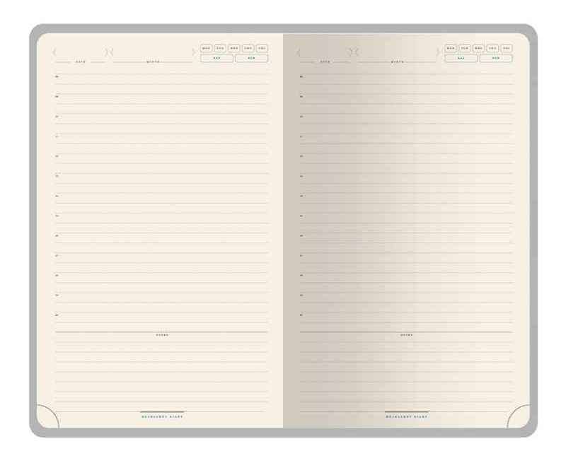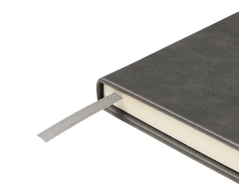 Твердую обложку из высококачественной искусственной кожи дополняет металлический хлястик на магните. Ляссе в цвет обложки позволяет быстро найти нужную страницу. Блок в 272 страницы произведен из бежевой бумаги плотностью 70 г/кв.м и имеет раздел справочной информации на 19 страницах. Для удобства навигации все углы блока перфорированы, имеют скруглённую форму.