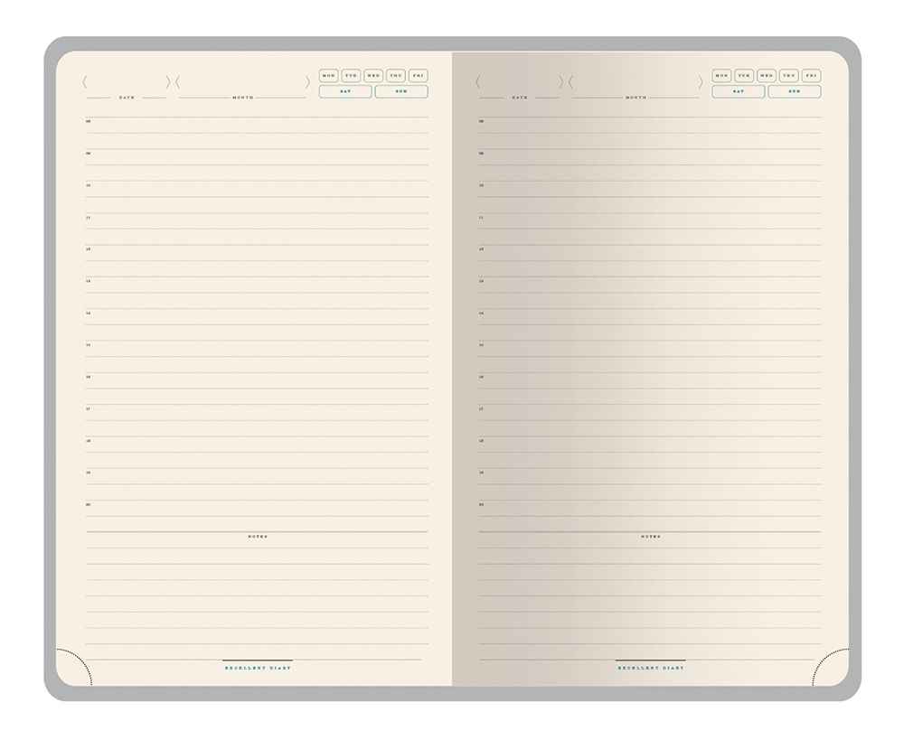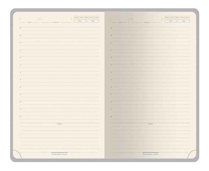 Твердую обложку из высококачественной искусственной кожи дополняет металлический хлястик на магните. Ляссе в цвет обложки позволяет быстро найти нужную страницу. Блок в 272 страницы произведен из бежевой бумаги плотностью 70 г/кв.м и имеет раздел справочной информации на 19 страницах. Для удобства навигации все углы блока перфорированы, имеют скруглённую форму.