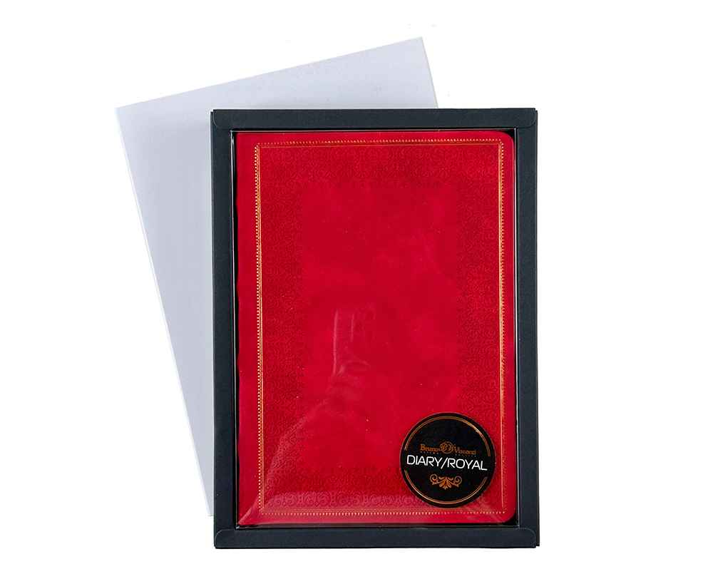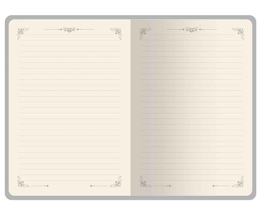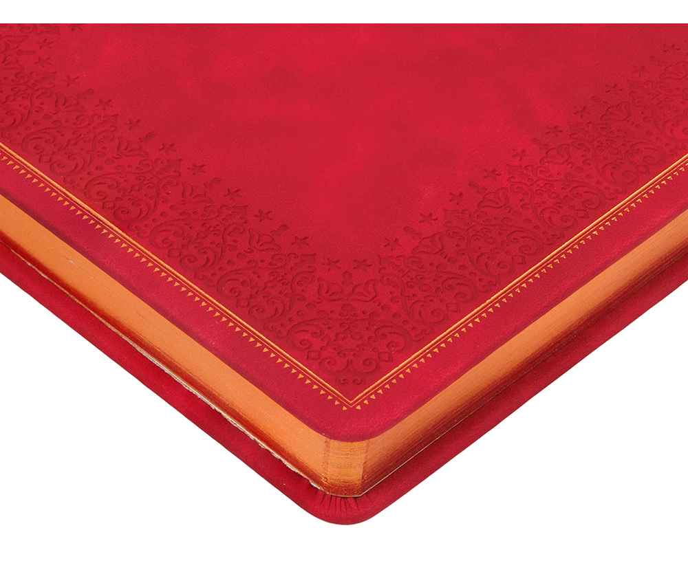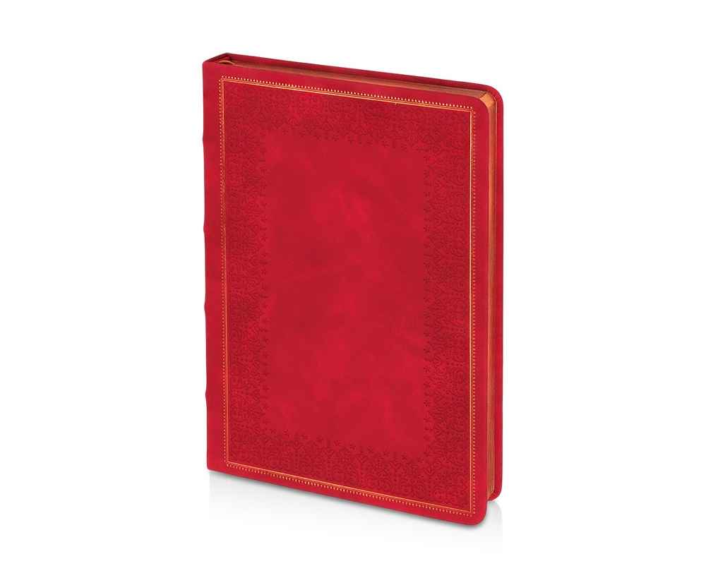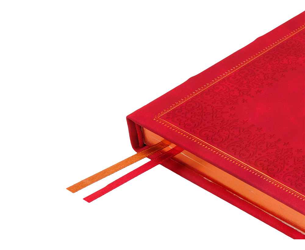Недатированный ежедневник Royal формата А5 с твердой обложкой из искусственной кожи с имитацией нубука украшен художественным бронзовым и блинтовым тиснением. Внутри 256 страниц, выполненных из качественной бежевой бумаги в линейку плотностью 100 г/м². Два шелковых ляссе в цвет обреза блока и обложки облегчают навигацию по записям. Французский корешок дополнительно декорирован изящным бронзовым тиснением в виде виньеток. Скругленные углы обложки и блока подчеркивают стильный дизайн изделия, а блеск бронзового обреза дарит ежедневнику благородный и роскошный внешний вид.