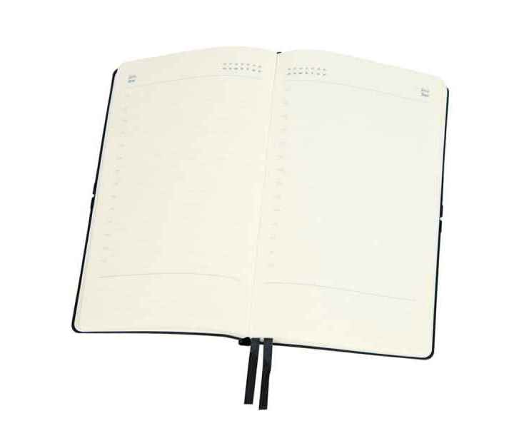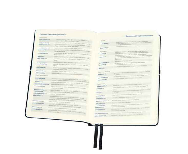 Цвет обложки, близкий к пантону Black C, Размер 130*210 мм, переплет мягкий Обложка рециклированная кожа Cromwell Блок недатированный, в линейку Скругленные углы Бумага кремовая, плотность 70г/м2 Форзац/нахзац кремовые 256 страниц 8 инфостраниц для путешествий Резинка с функцией пенхолдера Двойное ляссе в цвет обложкиПодарочная коробка (ручка в набор не входит)