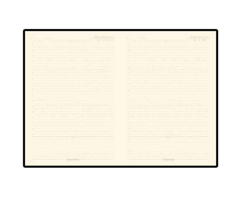 В ежедневнике Leggenda есть полезная справочная информация, а также 272 страницы для записи идей, мыслей и составления рабочих планов.. Для изготовления страниц используется качественный бежевый офсет повышенной плотности (70 г/кв м), который производится в Японии и подходит для всех видов чернил. Блок, отпечатанный в две краски, разлинован в линейку, где рядом с графами указано время. На форзаце обложки есть отдельный карман для хранения визиток, бумаг и записок.