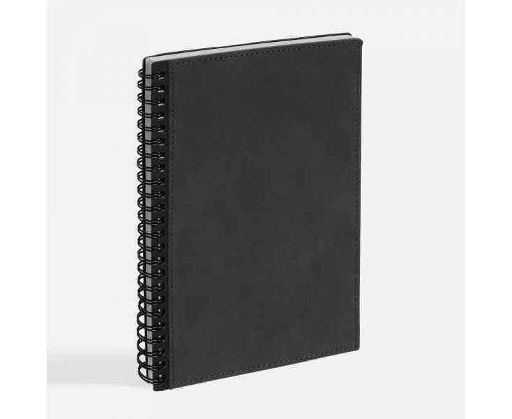 Ежедневник с интегральным переплетом и обстрочкой по периметру на открытой пружине.