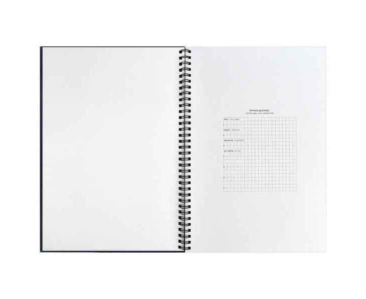 Ежедневник с интегральным переплетом и обстрочкой по периметру на открытой пружине.