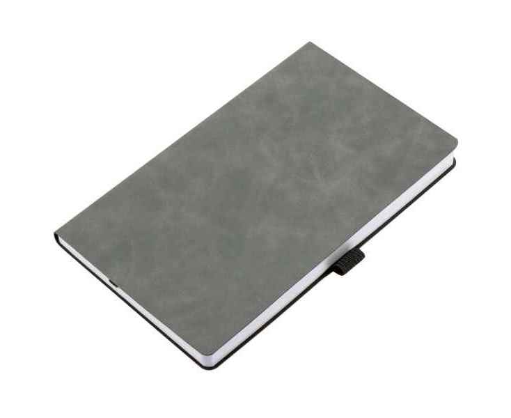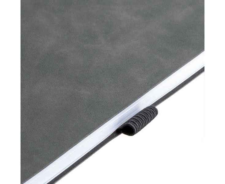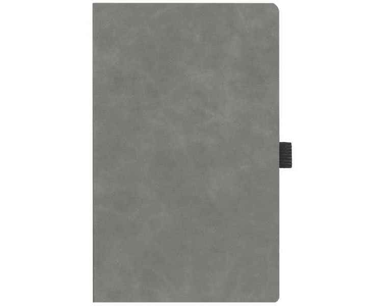Ежедневник с гибкой обложкой, выполнен из материала Nubuck Touch, серый СС, дополнен ляссе и петлей-резинкой для ручки черного цвета.