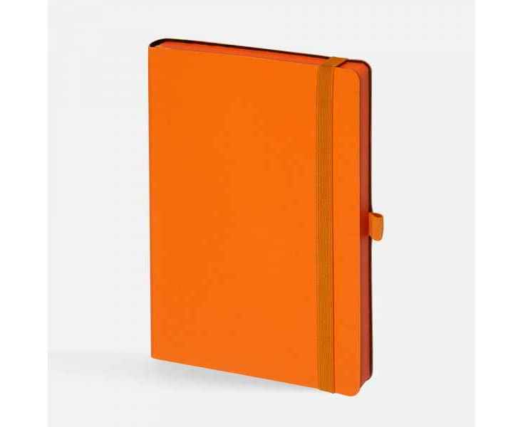 Ежедневник с гибкой обложкой, выполнен из материала Nice Touch, оранжевый ОО, дополнен цветными ляссе и петлей-резинкой для ручки.