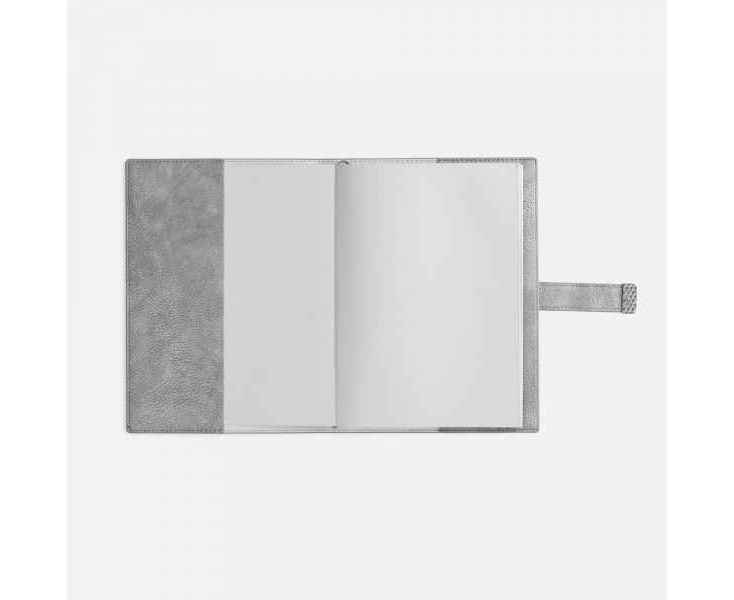 Ежедневник в мягком переплете со съемной обложкой, дополнен застежкой-хлястиком с металлическим шильдом на кнопке, двойным ляссе и капталом.