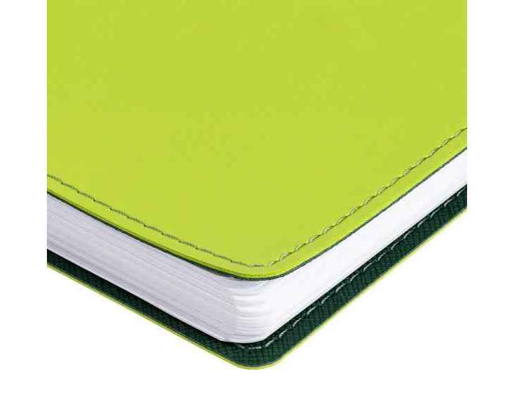 Ежедневник с гибкой обложкой, выполнен из материалов Soft Touch, светло-зеленый YY и Nice Touch, зеленый FF.