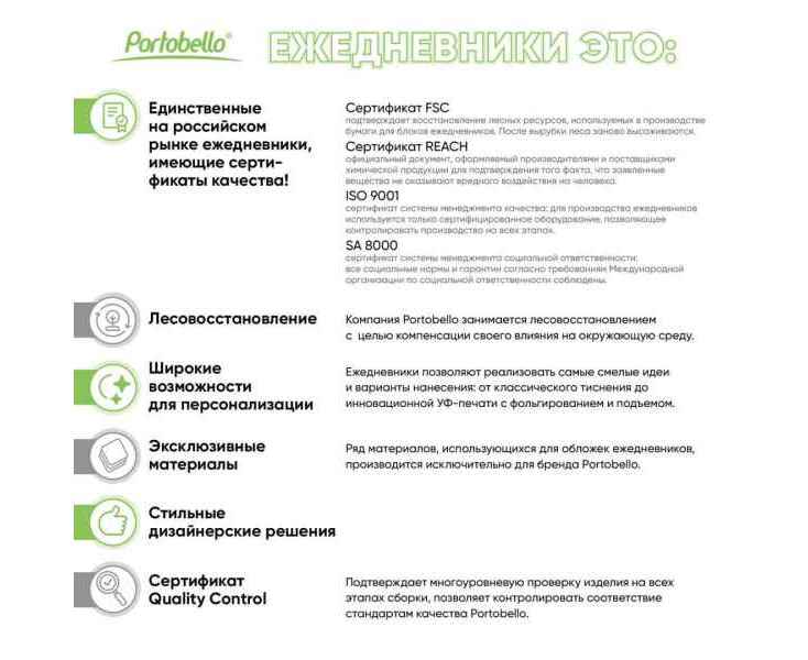 Ежедневник Star — стильный и функциональный недатированный ежедневник Portobello. Лаконичный дизайн и мягкая на ощупь обложка из матовой искусственной кожи Moon River с покрытием Soft Touch делают его идеальным помощником для современного человека.