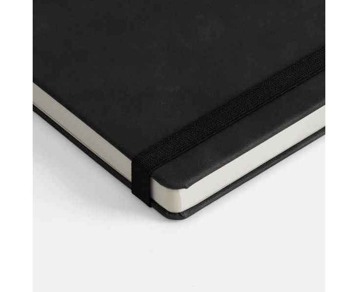 Ежедневник с твердой обложкой, выполнен из материала Nubuck Touch, черный AA, дополнен ляссе в цвет обложки.