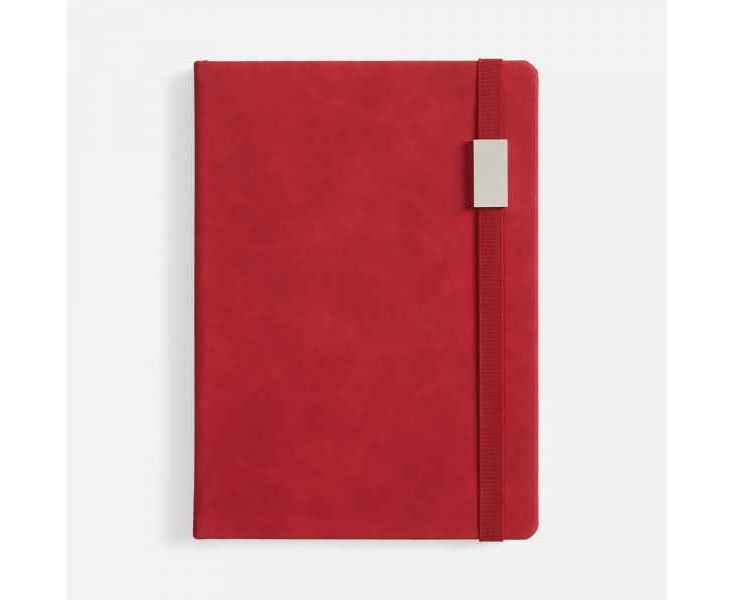 Ежедневник с твердой обложкой, выполнен из материала Nubuck Touch, красный PP, дополнен ляссе в цвет обложки.