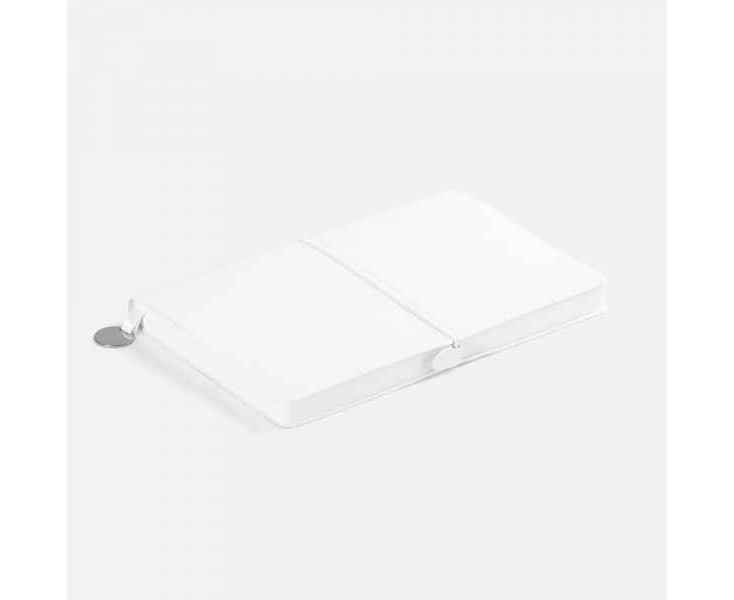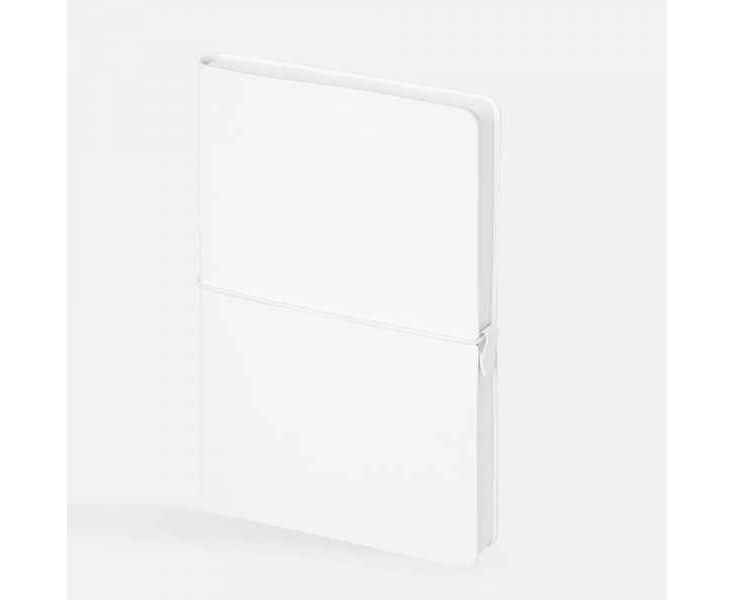 Ежедневник с гибкой обложкой, выполнен из материала Waltz, белый BB, дополнен ляссе в цвет обложки с металлическим шильдом.