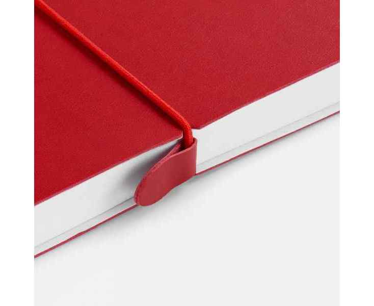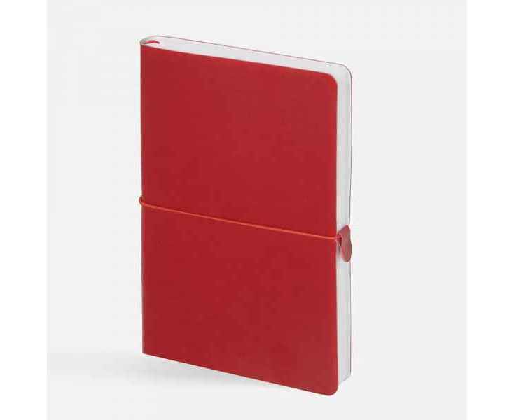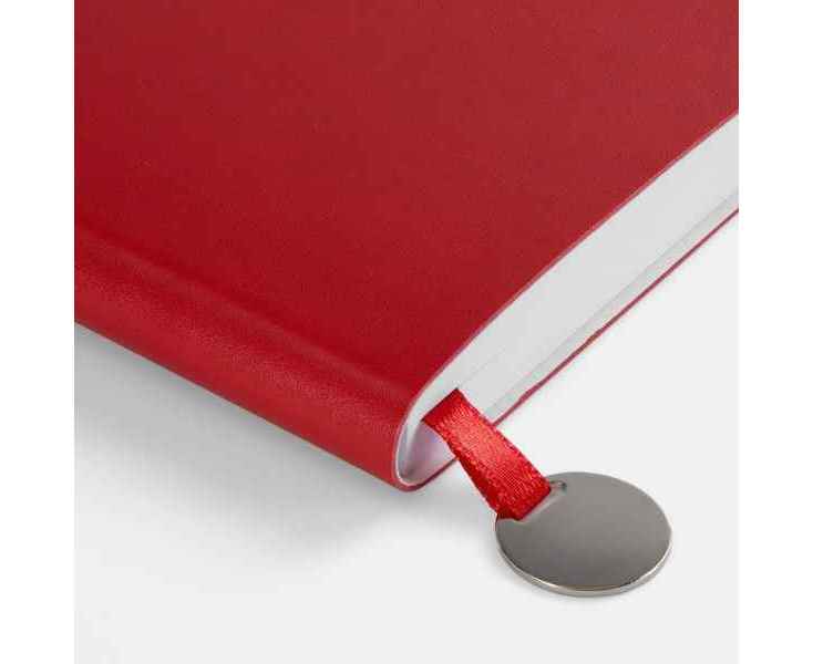 Ежедневник с гибкой обложкой, выполнен из материала Waltz, красный РР, дополнен ляссе в цвет обложки с металлическим шильдом.