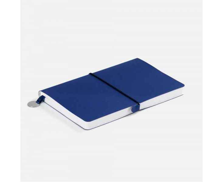 Ежедневник с гибкой обложкой, выполнен из материала Waltz, синий НН, дополнен ляссе в цвет обложки с металлическим шильдом.