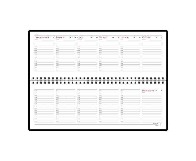 Недатированный планинг размером 305*130 мм состоит из 128 страниц с креплением на металлическом гребне. Используется высококачественная белая бумага плотностью 70 г/км. Полезная справочная информация на 14 страницах пригодится в бизнесе и повседневной жизни (телефонные коды России и мира, праздники, единицы измерения, таблицы размеров, часовых поясов и т.д.)