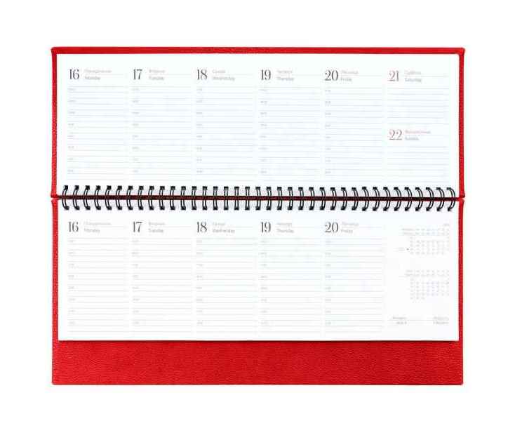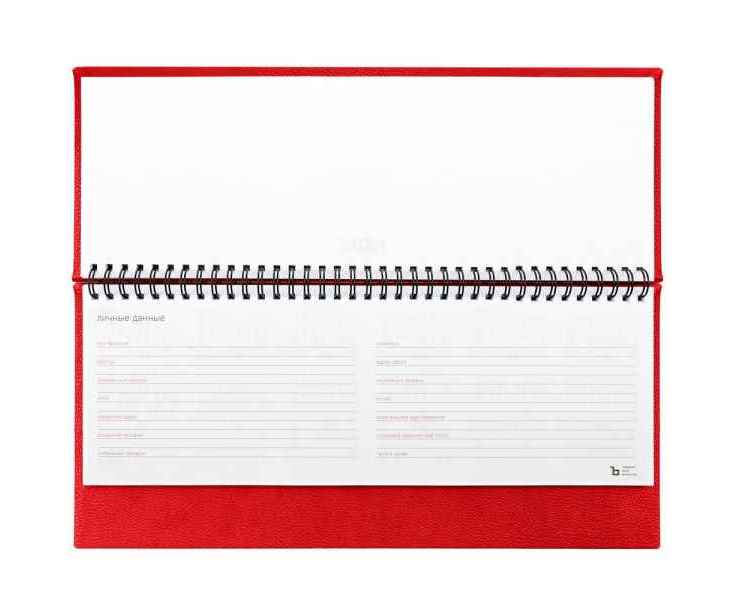 Планинг с твердой обложкой с поролоном, выполнен из материала La Fite, красный РР.