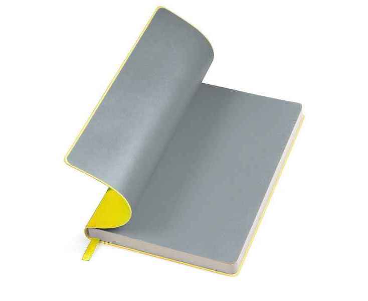 Ежедневник недатированныйс мягкой термоактивной обложкой и,популярной,комбинацией цветов Термоактивный PU материал,Velvet Цвет обложки, близкий к Pantone 109С Цвет форзаца, близкий к Pantone Cool Gray 5U Внутренний блок 256 страниц,в линейку Идеально скругленные углы блока Кремовая FSC бумага,70 г/м2 Ляссе в тон обложки Индивидуальная упаковка: крафтовый сливбокс,