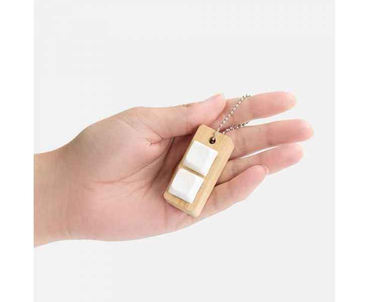 Компактный антистресс из бамбука на металлической цепочке с двумя кликающими кнопками, имитирующими механическую клавиатуру, Поможет снять стресс и беспокойство, а также улучшить концентрацию в сложные дни.