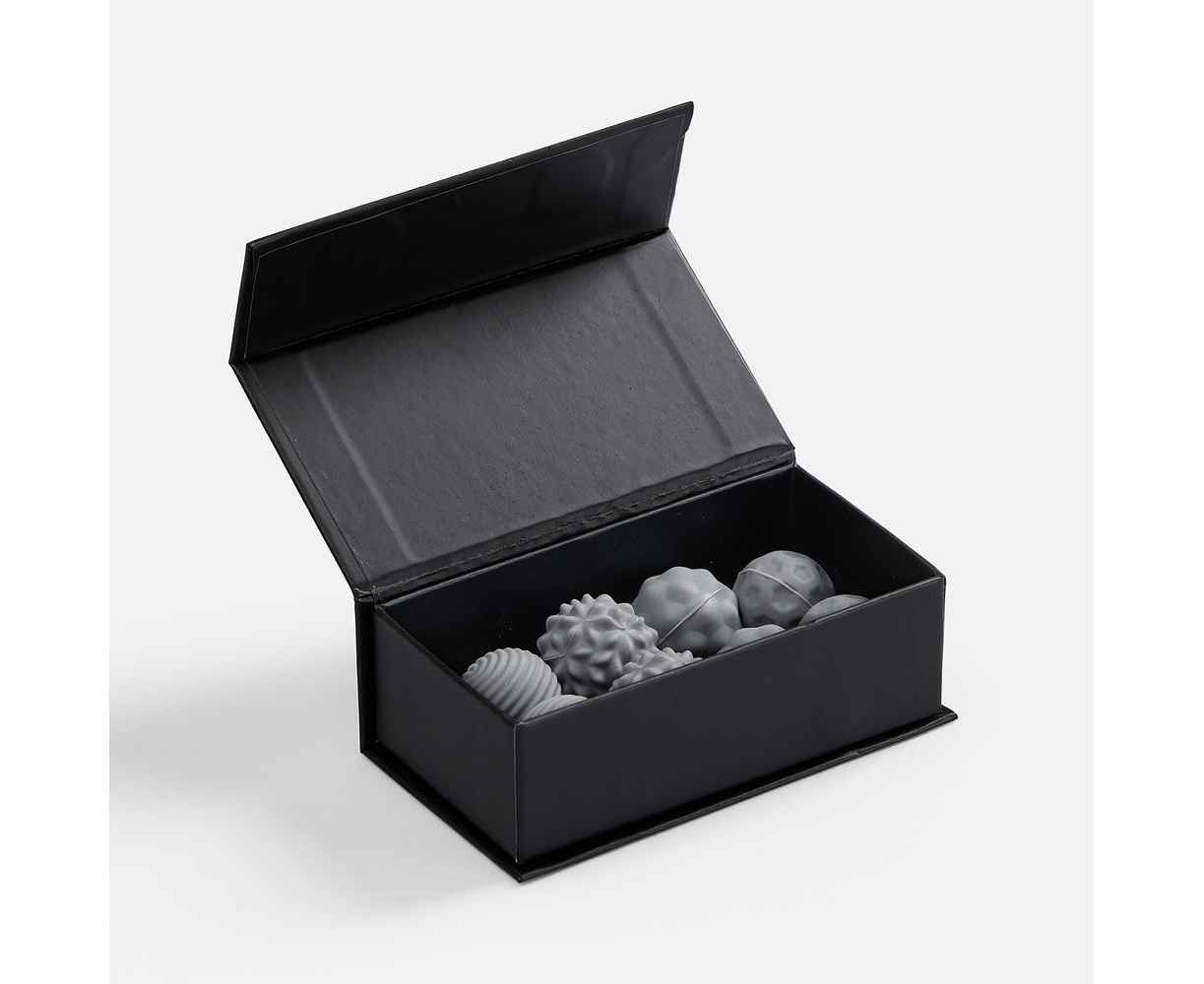 Шарики разной фактуры легко можно использовать как массажные.В комплекте: 8 шариков, мешочек, подарочная коробка на магнитном клипе.