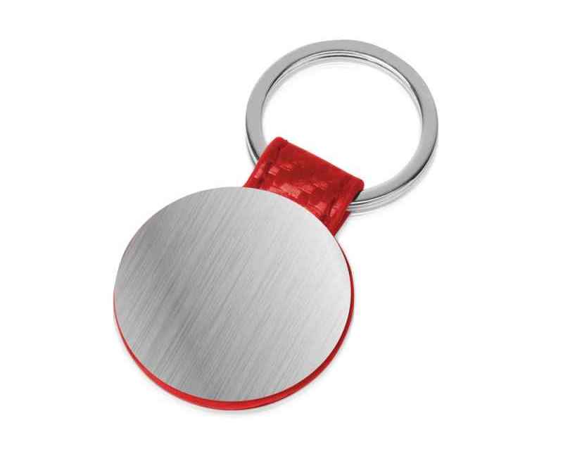 Оригинальный брелок с двумя металлическими пластинами для нанесения. Цветные детали из искусственной кожи создают особое настроение и помогут подчеркнуть цветовое решение логотипа.