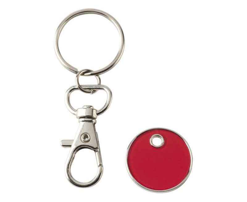 Брелок Rory с цветной монетой для тележки подходит для большинства тележек супермаркетов, позволяя открывать их без монет или жетонов. Цинковый сплав.
