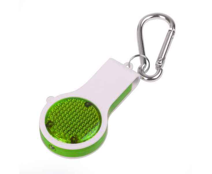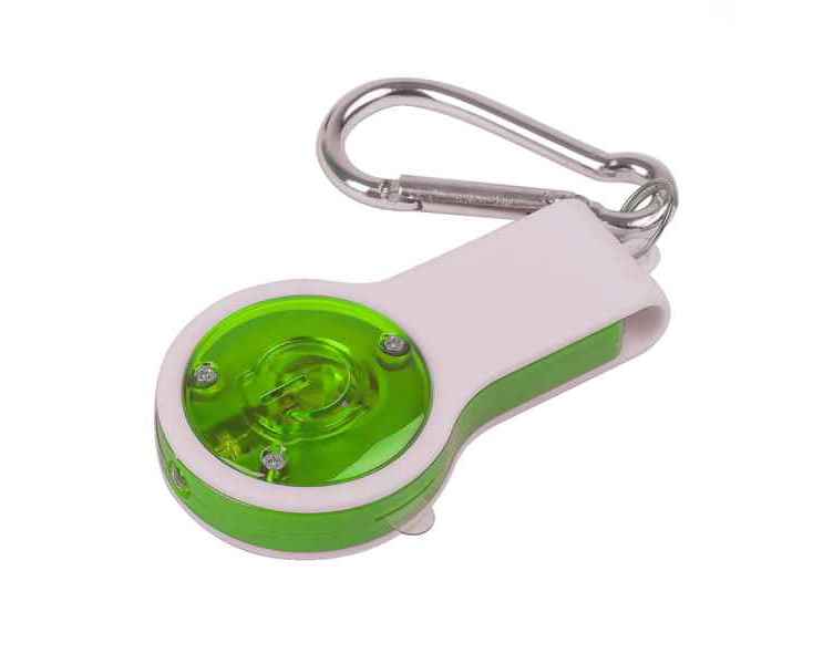 Подробнее о Брелок FLOYKIN со свистком, фонариком и светоотражателем на карабине, зеленый с белым,3,7х6,7х1,5см
