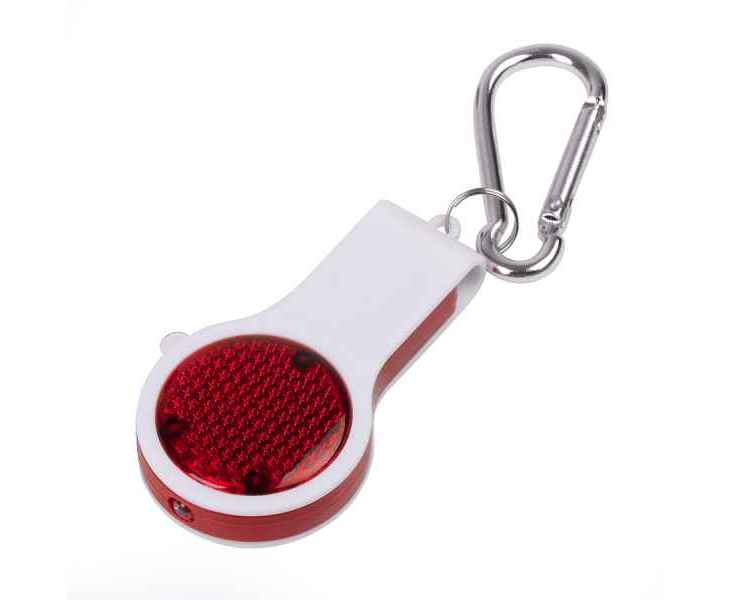 Подробнее о Брелок FLOYKIN со свистком, фонариком, светоотражателем на карабине, красный с белым, 3,7х6,7х1,5см
