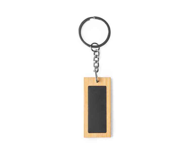 Прямоугольный брелок из бамбука и стали. Идеально подходит для лазерной гравировки.