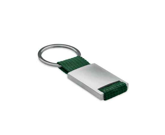 Metal rectangular key ring with coloured polyester webbing. Individually packed in a carton gift box.