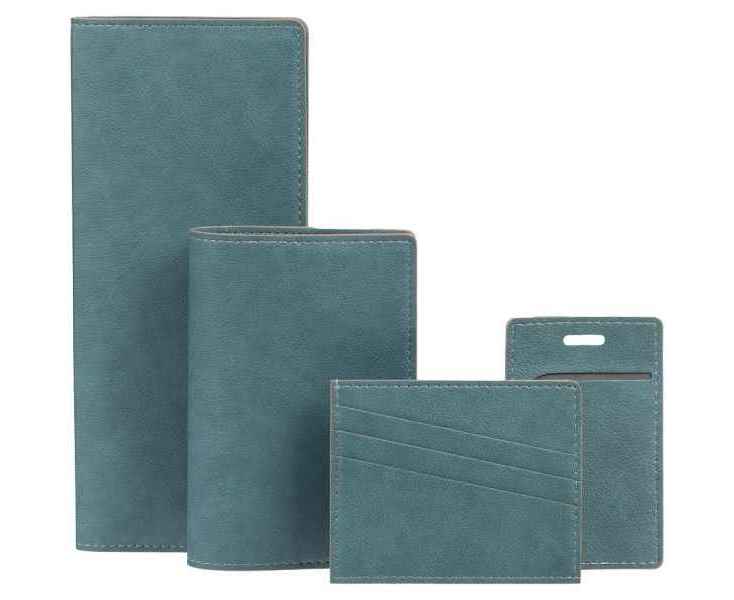 Чехол выполнен из материала Petrus, голубой JJ, дополнен окрашенным срезом края и внутренним карманом из серого картона. Имеет 4 отделения для кредитных карт и 1 отделение для купюр.
