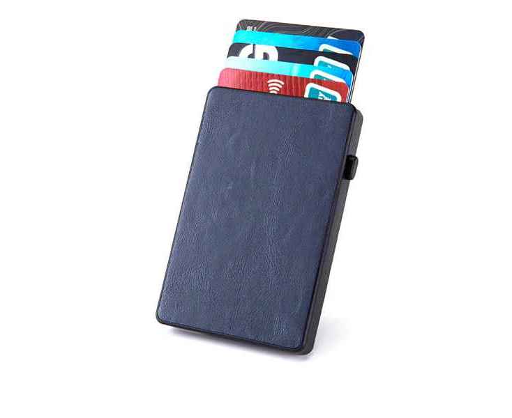 Современный практичный способ хранить и использовать банковские карты – держатель Amir с приятным покрытием из искусственной кожи. Бокова кнопка позволяет легко извлекать карты из бокса с защитным покрытием против копирования данных.