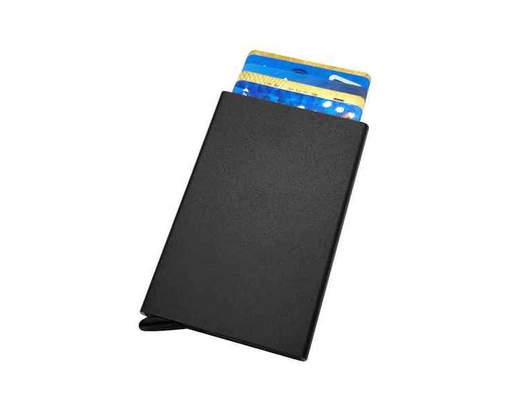 Современный практичный способ хранить и использовать банковские карты – металлический держатель Visir. Кнопка снизу позволяет легко извлекать карты из бокса с защитным покрытием против копирования данных.