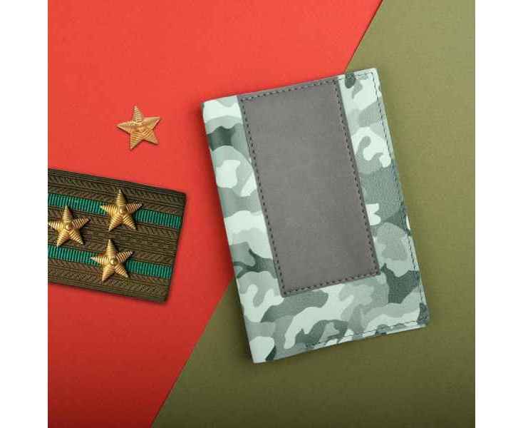 Подробнее о Обложка для паспорта,'Military',серый камуфляж, кожа натуральная 100%