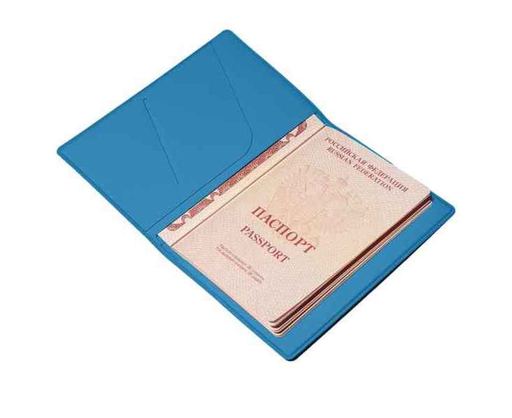 Обложка для паспорта,Simply, 13.5 х 19.5 см, голубая,,PU, c эффектом soft touch, с 3 дополнительными отделениями.